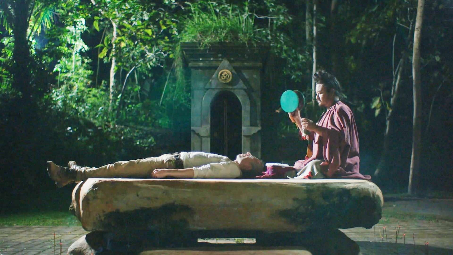 Karma Yogi, an Indian Master, after nine years in a cave developing his consciousness, uses powerful mantras to clear David's karmic debts in a “spirit binding” ritual - so powerful it’s been attributed to the raising of souls from the dead.